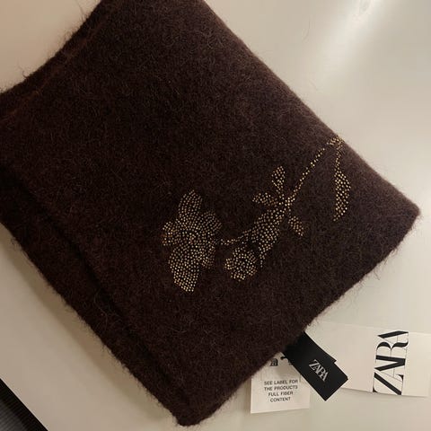 Nydelig skjerf i alpakka, ull og acryl. 195 cm.