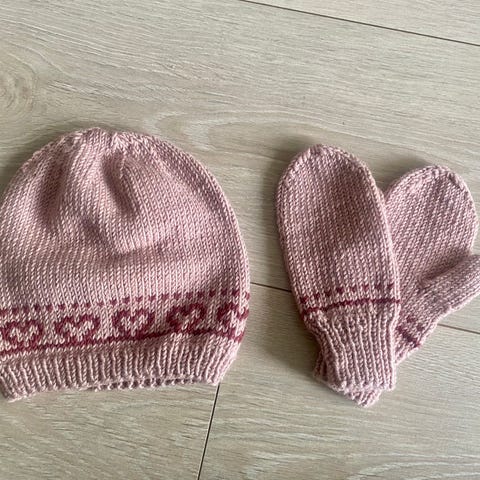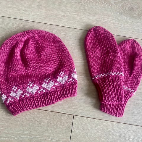 Lue og leggvarmere strikket i Karisma, 100% ull. Str. 3-4 år
