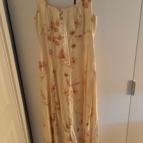 Selger en nydelig og eksklusiv kjole i 100 % silke. Lett og behagelig materiale med et elegant uttrykk – perfekt til både sommerbruk og penere anledninger.