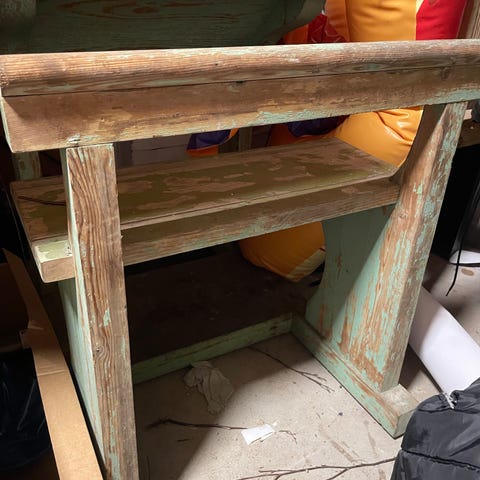 Gammel barne skolepult med 2 stoler selges .Pult h.60cm,b.65cm. Stoler full høyde 72 cm. Sitte høyde 40 cm. Stolene hører til pulten. Kommer fra en nedlagt barne skole. Kr 1200 med begge stolene