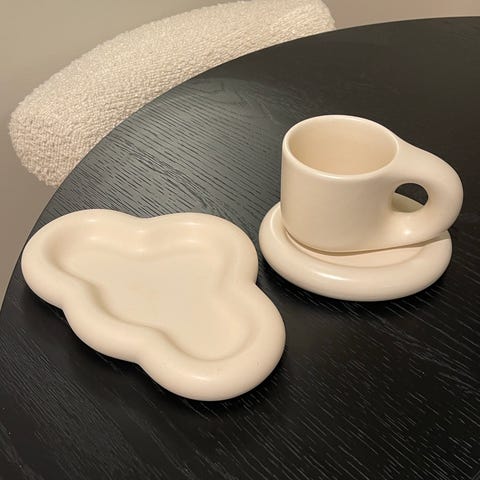 Nye Hvite Siggjo Porselens kopper med fat, også for porselensmaling