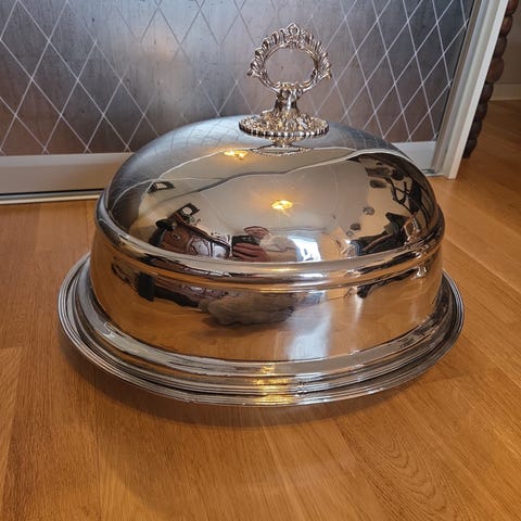 Nydelig terrin med lokk fra Hadeland Tinnstøperi selges.