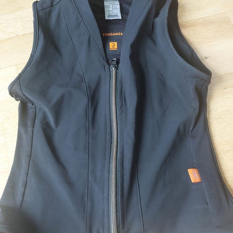 Rosa og svart ridevest med snøring i sidene selges.
