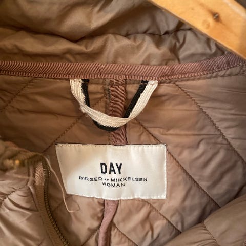 Selger stilig og nesten ikke brukt kåpe/jakke fra DAY Birger et Mikkelsen. Str. 36, men føles som 38. Stoffet er en kombinasjon av fleece, kraftig bomullsstoff og vattert nederst. Nederste del og hetta kan tas av, se bilder. Ny pris 1500kr. Selger for 400kr. Kan sendes