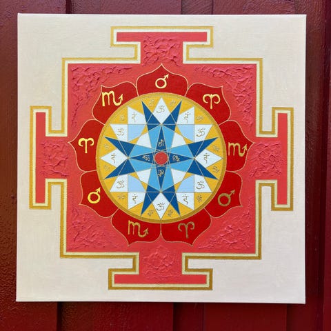 Akryltekstur Sri Yantra på strukket lerret 40 x 40 cm