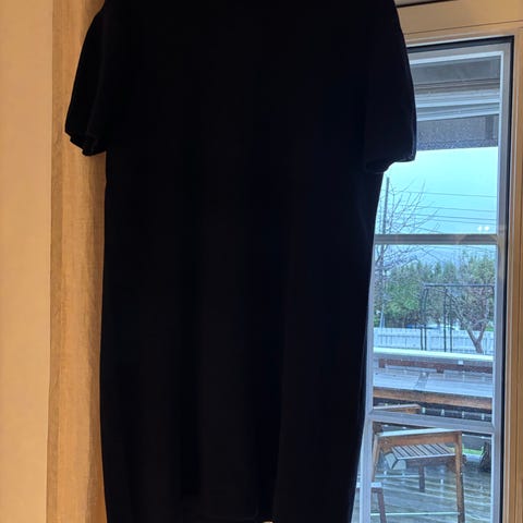 «Netting»-stoff hals og armer. Velur i front og resten bomullsaktig stoff.