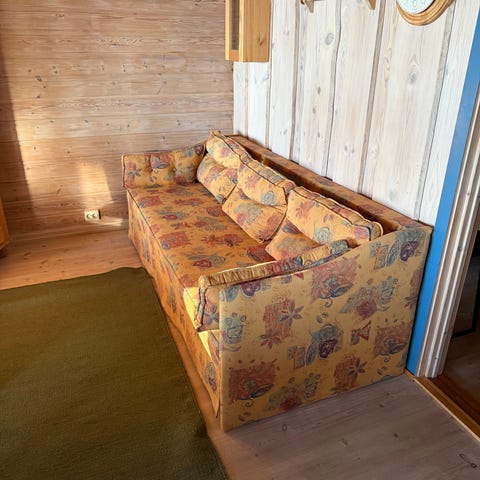 Sovesofa giast vekk ved henting. Bunnen og putene som hører med følger sjølvsagt med men er montert av for å enklere flytte sofaen. Madrass kan hentes ved seinere anledning om ønskelig.