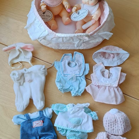 Litt anmerkning på kurven og litt på lukking/tøy bak🤔. Fine litt sjeldne vintage dukker👍🏻😍😍.