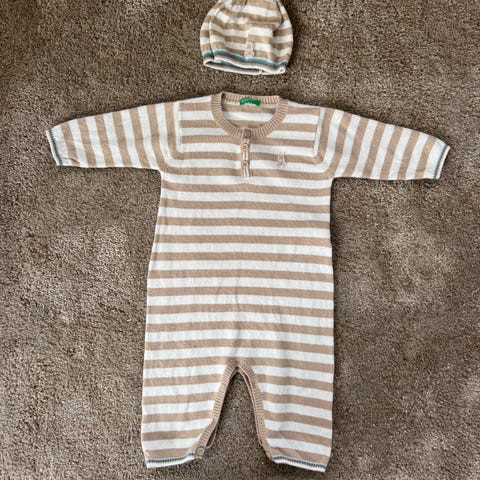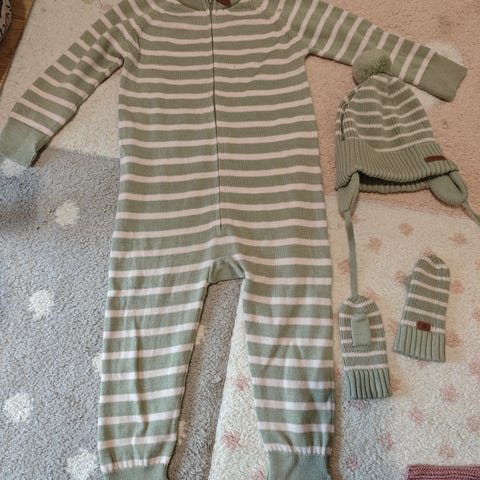Ulldress fra Cubus med lue og votter. Litt sliten votter (det skjedde etter vasking for 1st gang, men det går fint å bruke). Str 68