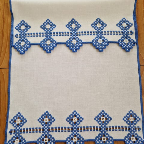 Rød juleløper med broderi i korssting