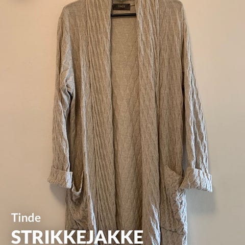 Pent brukt jakke/cardigan fra Tinde. Str. S. 60% ull, 40% polyakryl. Smal, lett innsvinget fasong. Kan brukes inne til pent over kjole eller bukser, men også som utejakke vår og høst.