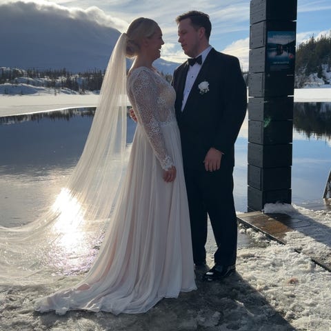 Kjøpt ny av meg våren 2024 og brukt noen få timer i bryllup oktober 2024. Kjøpt på Nordic wedding store & outlet. Kjolen ble sendt på rens rett etter bryllupet og fremstår som ny. Ingen flekker eller hull. Har fått den litt sydd om i ryggen for bedre passform. Kjolen er svært komfortabel å ha på seg.