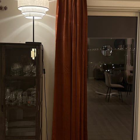 Seks gardinlengder på ca 210cm hver. Tror det stammer fra Princess. Pent og lite brukt. Selges samlet for 180 kr samlet. Ingen skader eller merker.