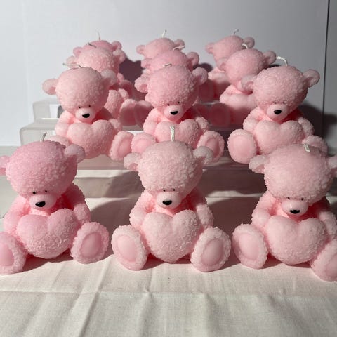 Håndstøpt stearinlys, stor bamse, blå/ rosa/sort