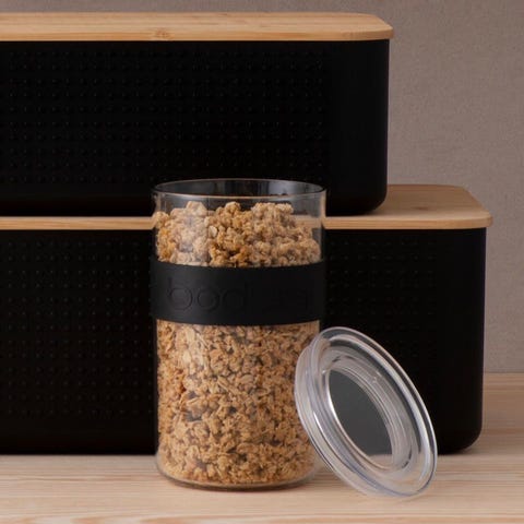 Bodum PRESSO oppbevaringskrukker er laget av gjenvinnbar, uknuselig plast, med lufttette lokk og er utstyrt med silikonbånd som gir et behagelig grep. De tåler i tillegg høye temperaturer og matvarer med høyt syreinnhold – uten å misfarges eller på noen måte påvirke smaken på innholdet. Det gir deg muligheten til å holde tørrvarer og væsker velsmakende – på elegant vis.