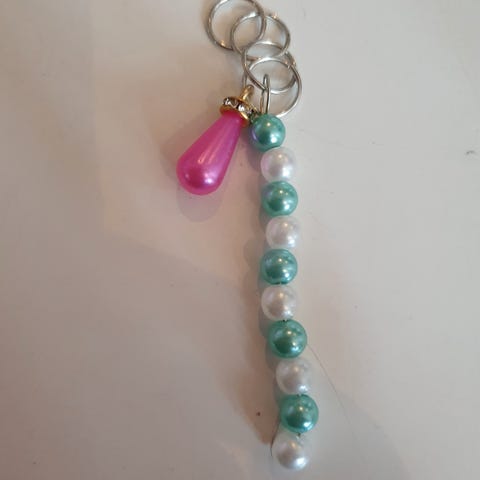 Nøkkelringene og smykkene er håndlagde :) Nøkkelringene er laget med slitesterk tråd. Smykkene er av stål, 45cm lange.