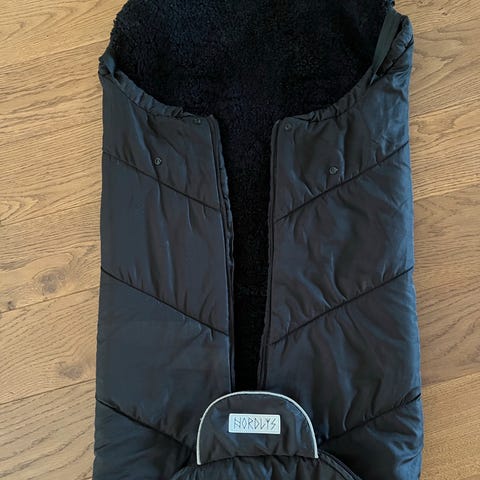 Selger en rød, retro vognpose som er god og varm. Uten hull til seler, så denne egner seg best i liggedelen på en vogn.