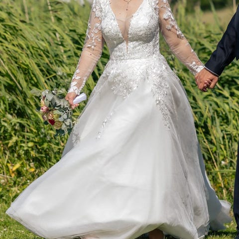 Kjolen er kjøpt ny hos Ski Brudesalong i august 2024 og brukt én gang.