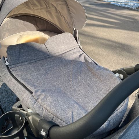Kjøpt ny av oss i 2020, følger med parasoll, myggnett, regntrekk og koppholder!