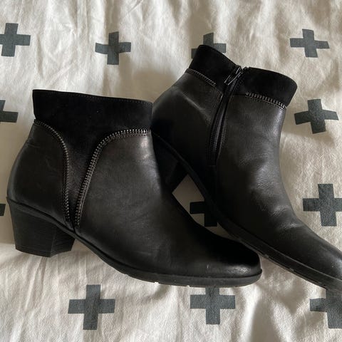 Selger mine veldig fine Tamaris ankelstøvletter i blå, strl. 41, da de er et hakk for små til meg. Har hatt de kun på én gang ute. Ingen skader/mangler.