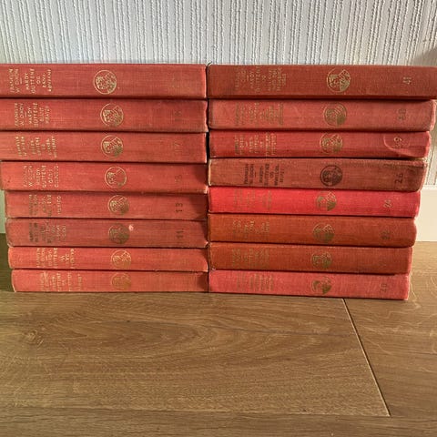 Hardy-guttene fra 1950-tallet 12 stk selges samlet til 2000 kr. Det er bøkene 12, 13, 17, 19, 21, 22, 23, 24, 25, 26, 28 og 29.