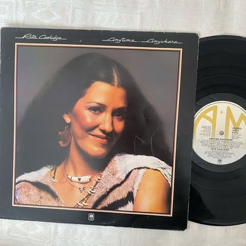 Single vinyl: Rita Coolidges Higher and Higher og Who’s to Bless and Who’s to Blame fra albumet Anytime Anywhere fra 1977.