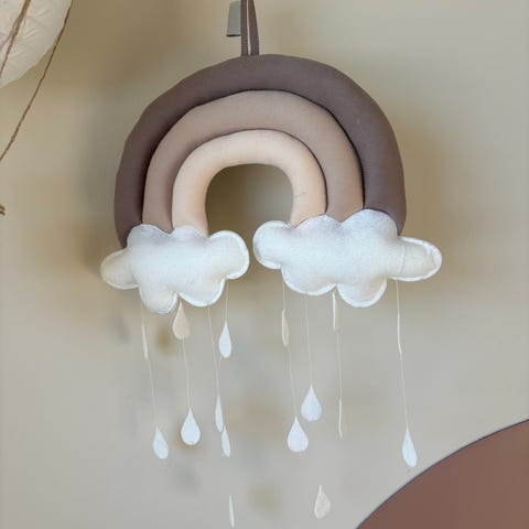 Det karakteristiske regnbuedesignet er håndvevd i tonede farger på veggteppet. Veggteppet er et fint og dekorativt element som skaper ro og varme i et rom. Regnbuer er der skatten finnes – heng regnbuens veggteppe på barnerommet eller i familiens hjerterom.