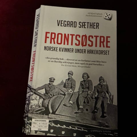 Vegard Sæther - Frontsøstre (2015). Norske kvinner under hakekorset. Bok med vareomslag. 230 sider + billedplansjer. Boken er nesten som ny. Cappelen Damm. Hentes ellre sendes.