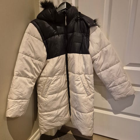Jakken er god og varm, pent brukt med unntak av et hull ved håndleddet, se bildet