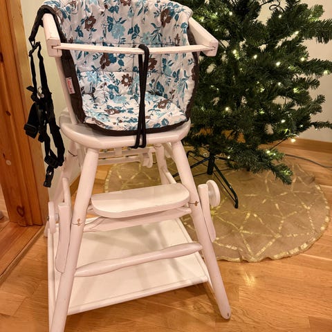 Vakker design - og stilig barnestol, som starter som stol til en baby, og kan ende opp som krakk resten av livet !