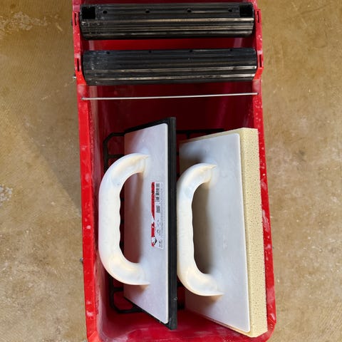 Rullekaret bruker du engangsinnlegg oppi for best resultat. Malerullebøylen har litt malingsrester på seg, men fungerer bra.