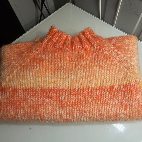 Jeg strikket dette til en svigersøster som trodde hun skulle ha en pike, og så ble det en gutt.