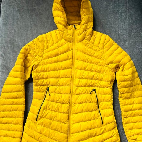 Sort/grå dunjakke. Stilige detaljer, lommer med glidelås. Samt liten lomme. Mulig å stramme inn nederst.
