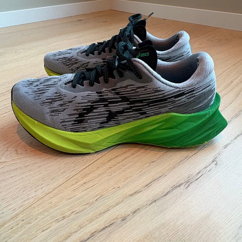 Selger et par Asics Blast FF str 44.5. Jeg bruker vanligvis 43-44 i str, men disse passet godt.