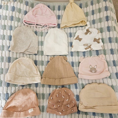 Strømpebukser og luer i str. 0-2 mnd.