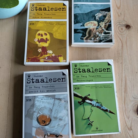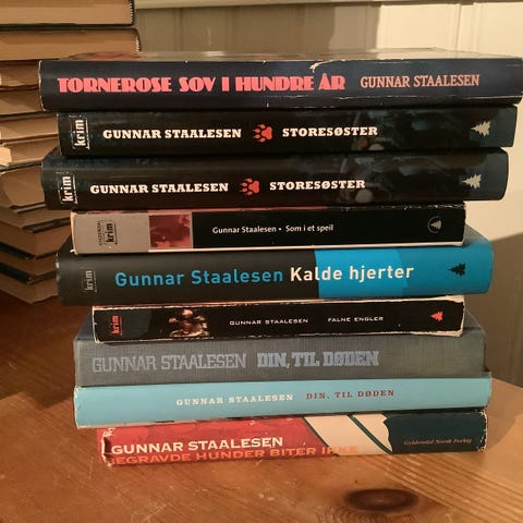 Tre bøker av Gunnar Staalesen, innbundet. Utgitt av Gyldendal Norsk forlag. Selges samlet.