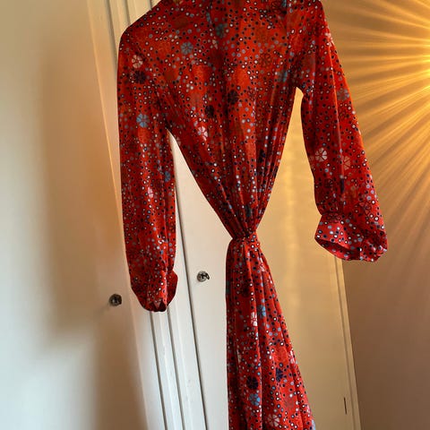Pen kjole str 12 (40) i 100% polyester brukt kun et par ganger for mange år siden til salgs kr 150.