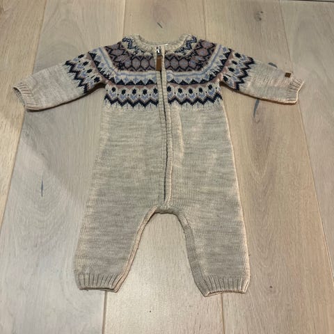 Godt brukt ulldress selges billig. Fortsatt god og varm, men litt løse tråder, en flekk som ikke er forsøkt tatt bort med flekkfjerner og slitte albuemerker
