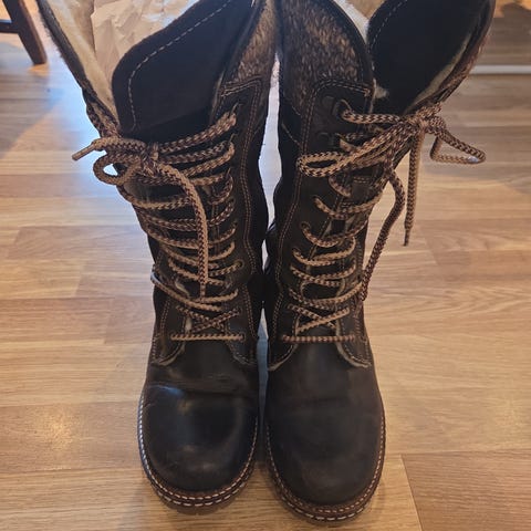 Tynt foret. Støvletter ca 10 år gamle skinn støvletter fra Tamaris. Burde pusses/smøres. Selges da de ikke har vært i bruk de siste 7 årene.
