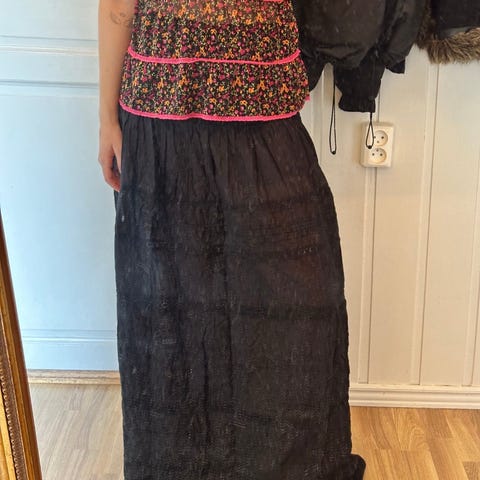 Super nydelig langt svart hvit skjørt! Den er virkelig kjempe fin! Kjøpt i utlandet og har mest blitt hengende i garderoben, å nå er den altfor liten for meg.