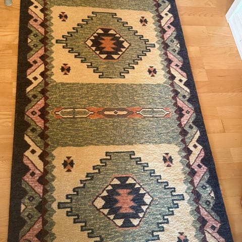 Teppet har inverterte mønster foran og bak, så du kan velge hvilken side du vil vise frem. Ved å snu det fra tid til annen, vil det tåle mer slitasje og holde enda lenger.