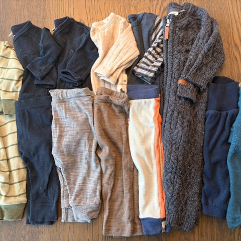 2 ullpysjamaser med fot (en har hull ved tåa)
