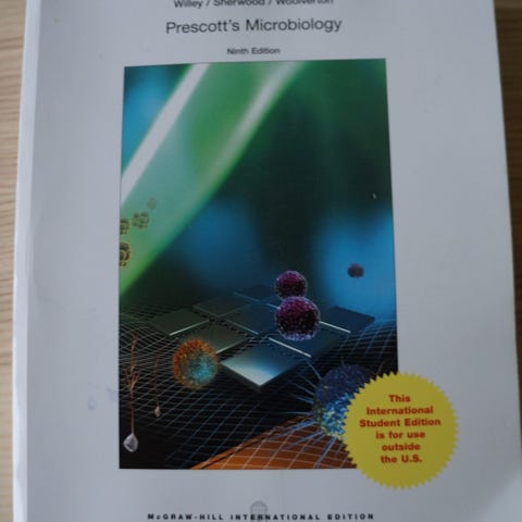 Pensumbok i mikrobiologi, pent brukt.