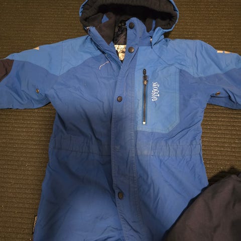 Bjärven kids coverall vinterdress fra Didriksons. Str 100. Fôret vinterdress som er vind og vanntett. Teipede sømmer. Noen bruksmerker som man ser på bildene, litt slitt nederst på benet og gummiremmen under, samt litt dårlig i glidelåsen, ellers fin😊