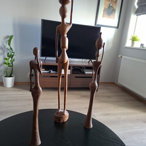 Håndlaget vakker figur av afrikansk opphav. Den er kjøpt i Dubai i 2003 på en internasjonalt messe . Den er unik og laget kun i ett eksemplar, så vidt jeg vet. Jeg kjøpte den for 2000.- kr i 2003. Ingen skade eller misfarging.