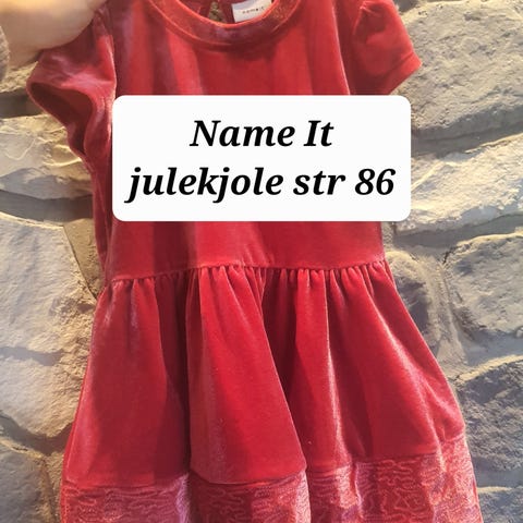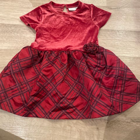 Helt nydelig fløyelskjole fra Name it. Rød mørk farge. Kjøpt i fjor og brukt til en jente. Ingen anmerkninger. Kan sendes