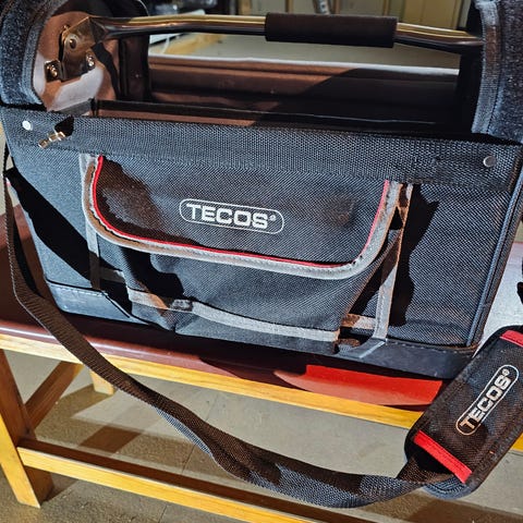 GT Line verktøysekk med hjul og teleskop trillehåndtak. Ryggsekk. Selene kan pakkes vekk. Plass til masse verktøy og egen PC lomme.