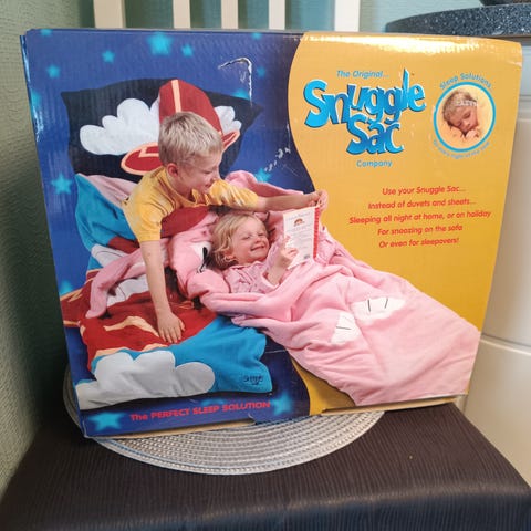 Blå Ole Brum sovepose, lengde 1,40m og total lengde 1,60m. 60cm bred. Med pose/ futteral.
