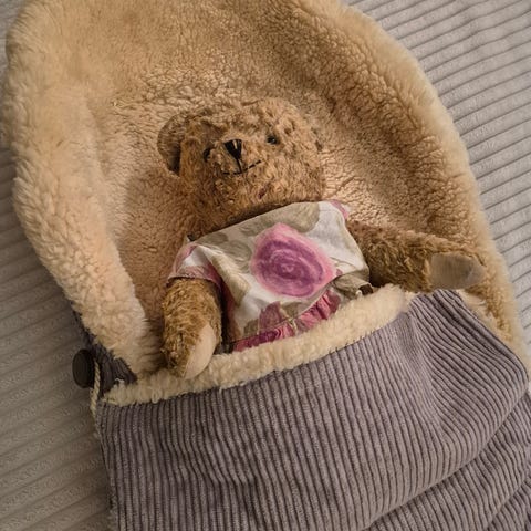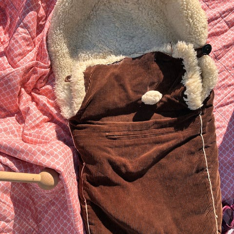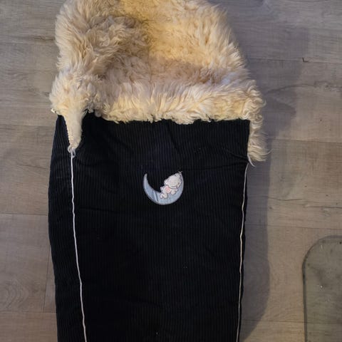 Selger denne gode og varme saueskinnsposen. Glidelås i begge sidene med en knapp/ hempe øverst på hver side.