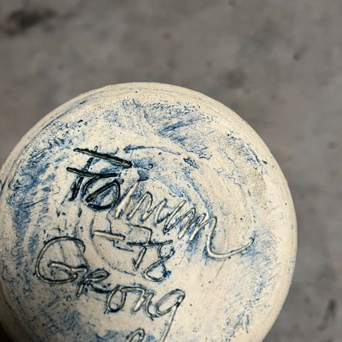 Artig keramikkskål. Antageligvis Syco eller Awf keramikk Diameter på skålen er ca 14 cm. Høyde med figuren ca 12 cm. Pris 100kr. Må hentes I Skotselv. Sender ikke